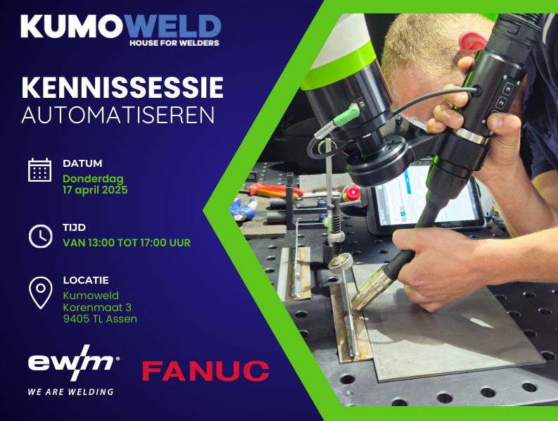 Bij Kumoweld nodigen we je uit voor een inspirerende kennissessie over de toekomst van automatisering in de las- en maakindustrie. Tijdens deze sessie presenteren we de nieuwste innovaties op het gebied van industriële robotica en software-integratie. De focus ligt op twee krachtige technologieën: de CRX cobot van Fanuc en de geavanceerde software-oplossingen van EWM: X-net en React.